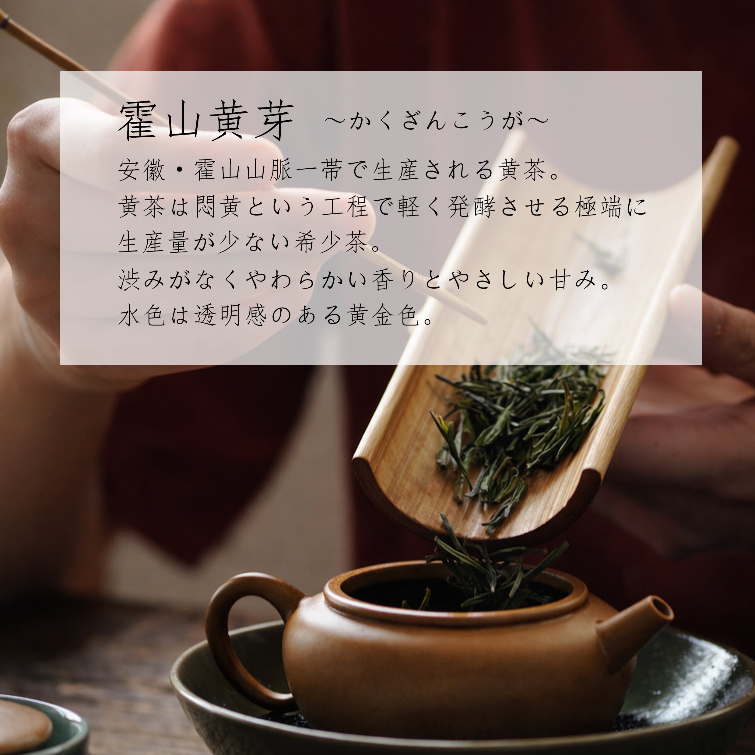 中国・安徽省霍山で作られる黄茶の代表格で、 唐の時代から存在し、明・清代には貢茶(献上茶)として名声を博した有名な高級茶です。