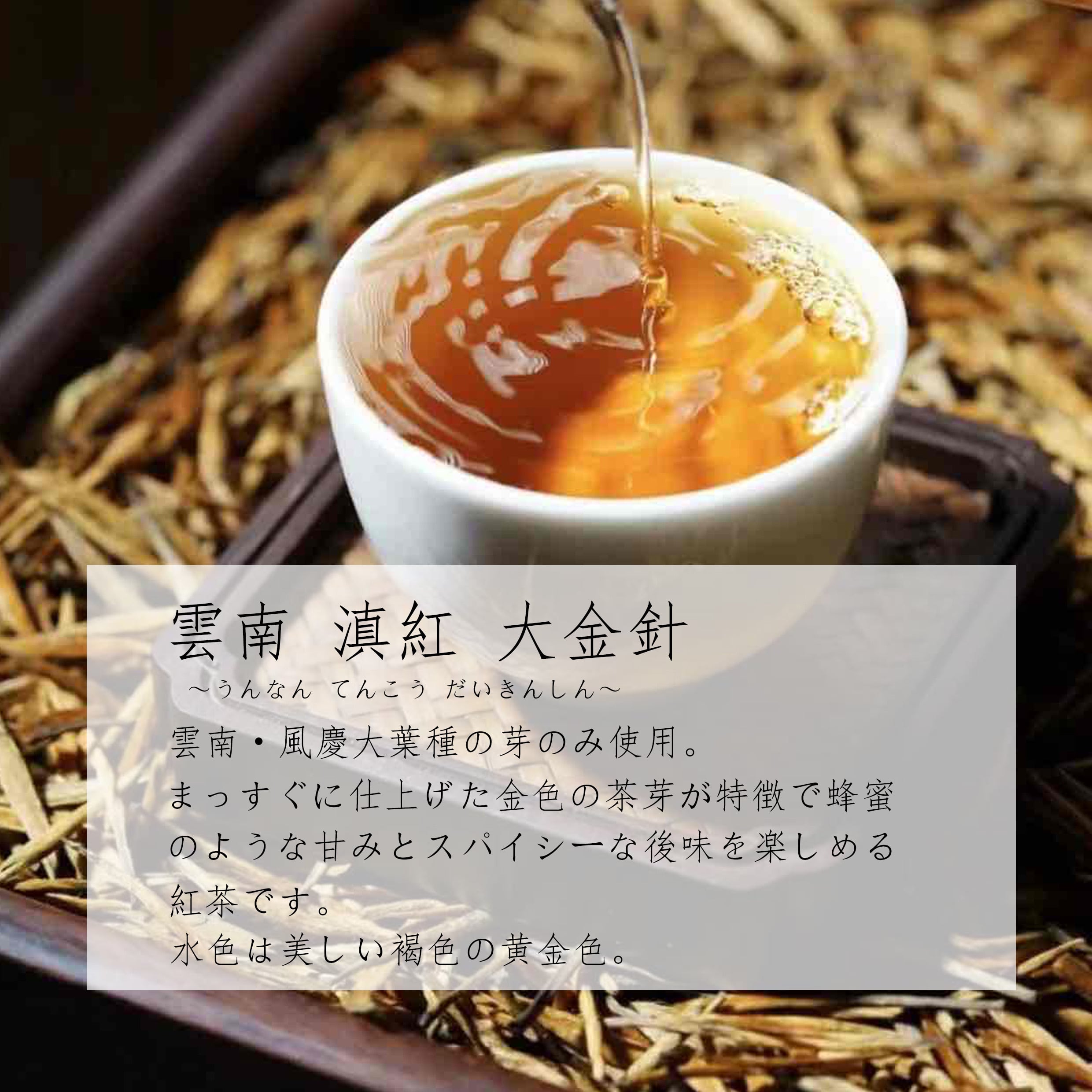 当店では大金針という美しい金色の芽だけを使い、まっすぐに仕上げた特徴的な茶葉、滇紅 大金針を取り扱っています。