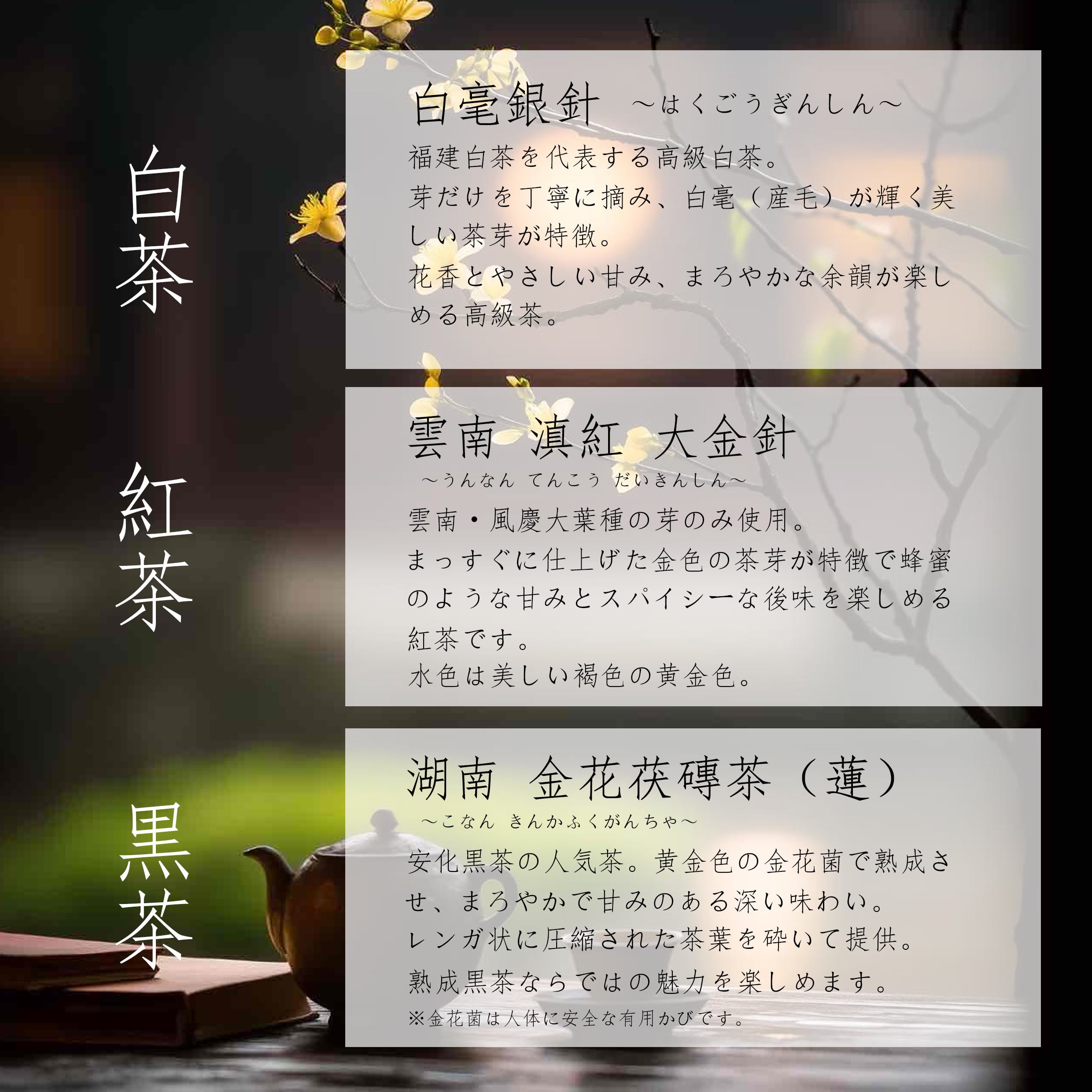 三華品茗(白茶、紅茶、黒茶)