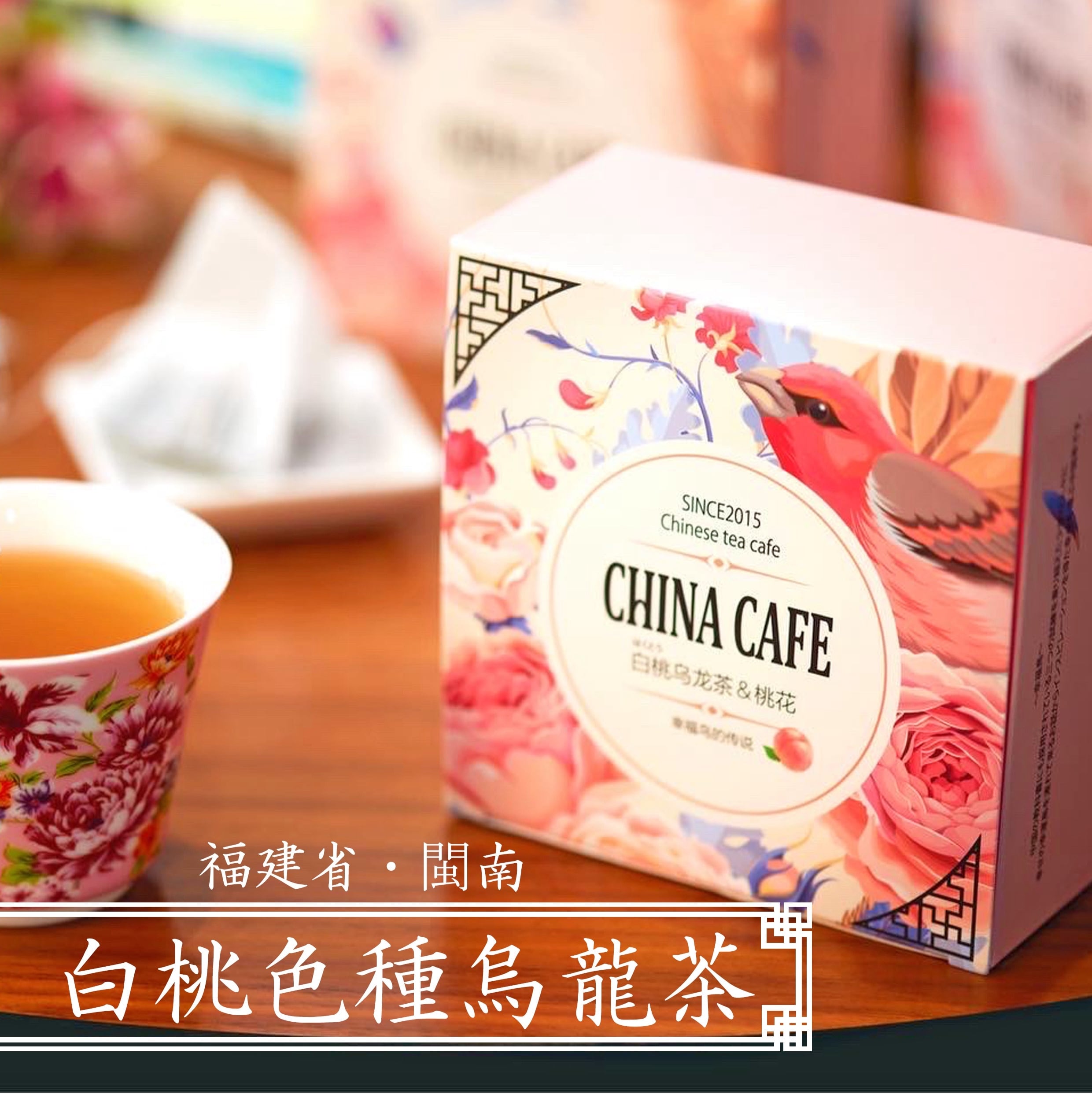 チャイナカフェ人気の白桃烏龍茶に桃花をブレンド。
