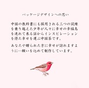 パッケージは中国の教科書にも採用される幸福鳥というストーリーをイメージしたデザインです。