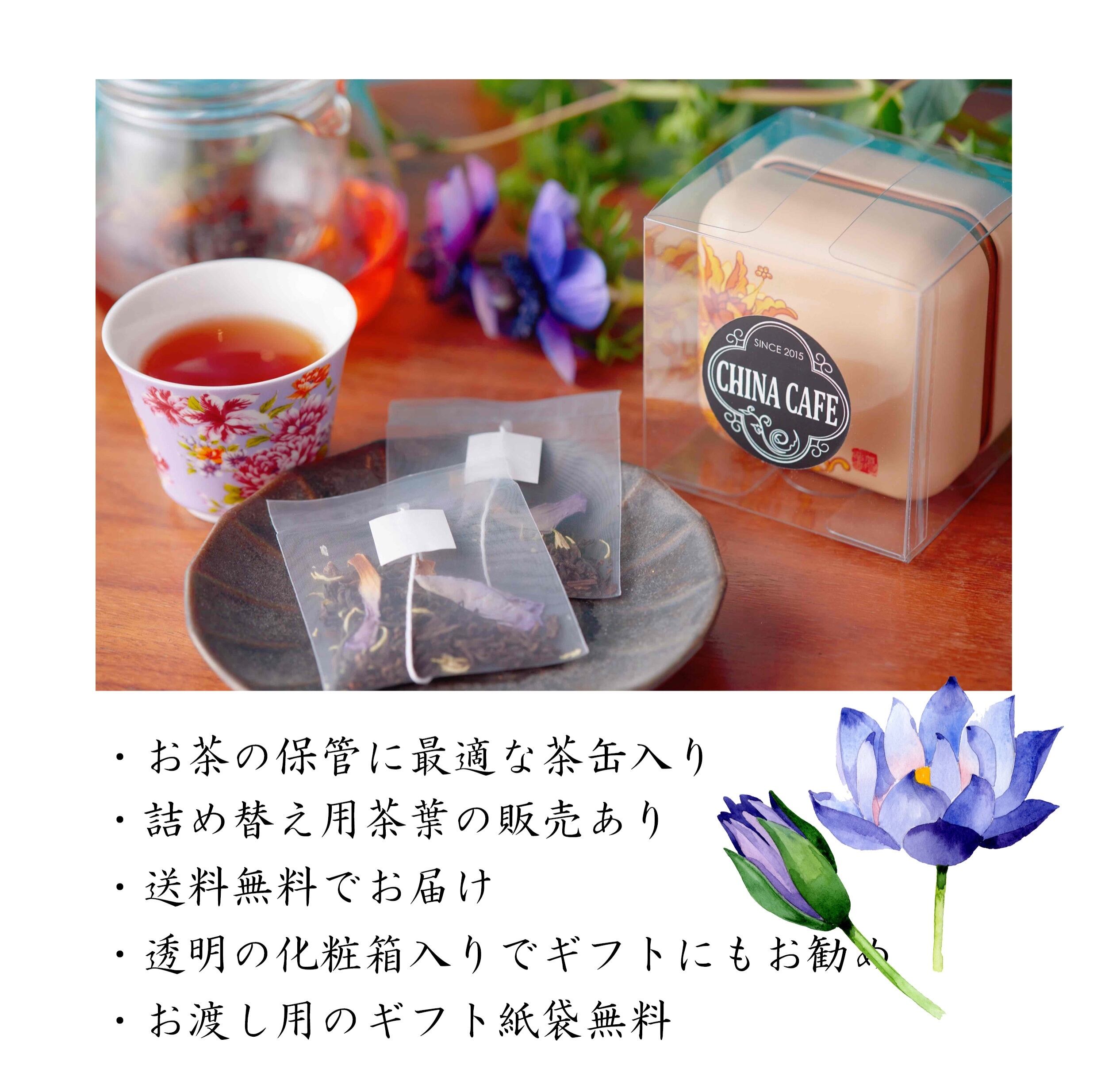 美、健康、癒しの時間をテーマに3種類(烏龍茶/紅茶/プーアル茶)ございます。それぞれお茶の味、香、効能、色などを複数の組み合わせから厳選しました。