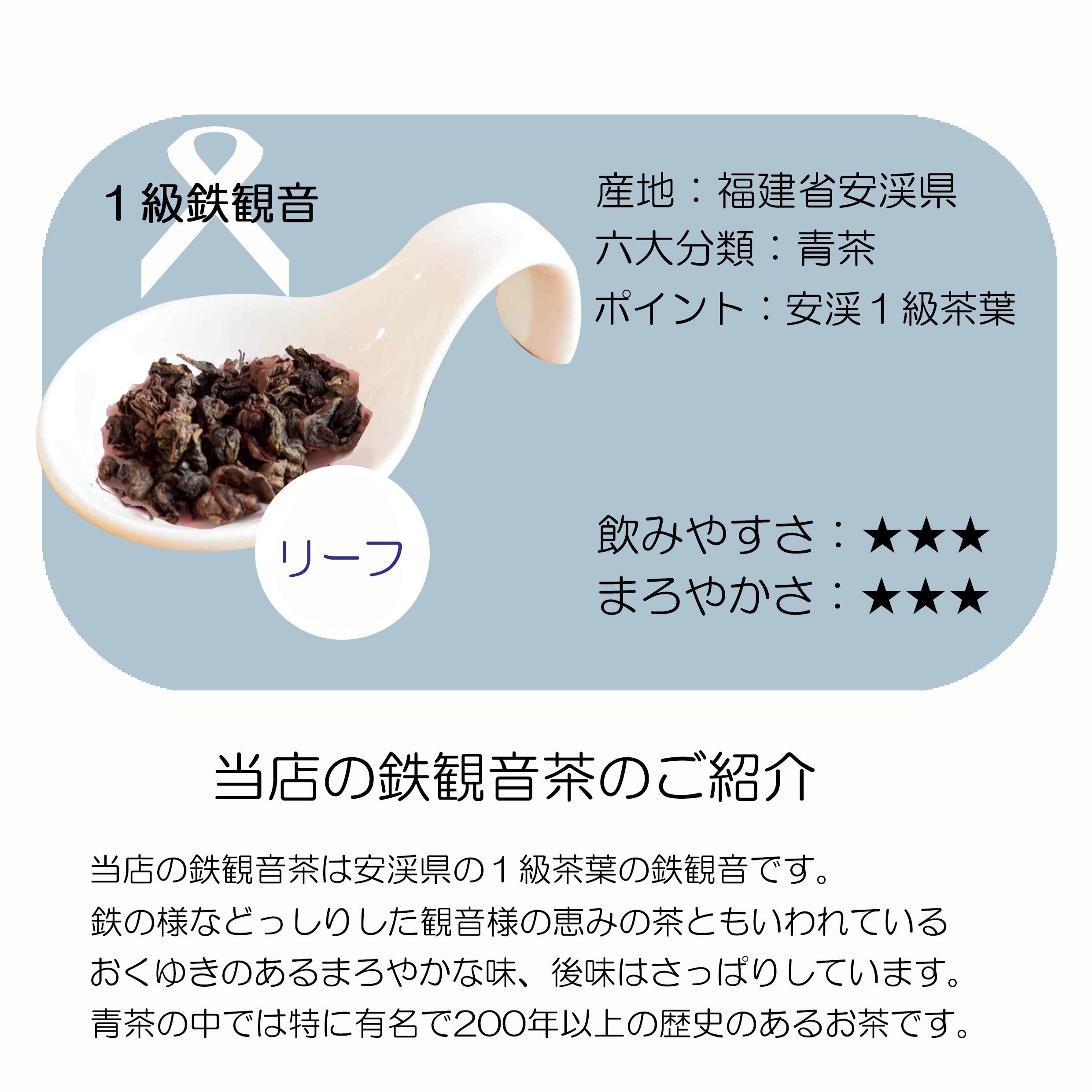安渓産の1級鉄観音茶(焙煎で仕上げた濃香型)です。